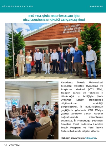 KTÜ TTM, ŞİNİK OSB FİRMALARI İÇİN