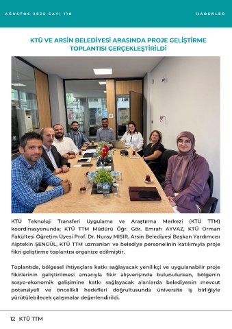 Alptekin ŞENGÜL, KTÜ TTM uzmanları ve belediye personelinin katılımıyla proje
