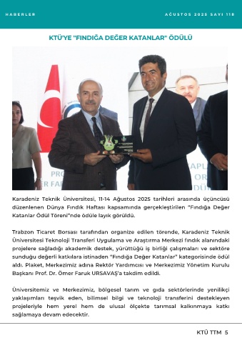 KTÜ'YE "FINDIĞA DEĞER KATANLAR" ÖDÜLÜ