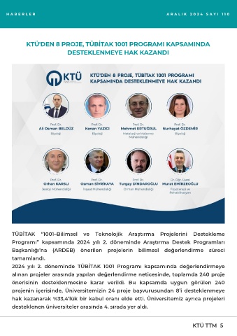 KTÜ'DEN 8 PROJE, TÜBİTAK 1001 PROGRAMI KAPSAMINDA