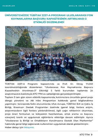 TÜBİTAK 2237-A Programı kapsamında ve Prof. Dr. Oktay YILDIZ