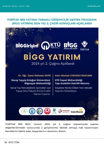 TÜBİTAK 1812 B GG Yatırım 2024 yılı 2. çağrısı kapsamında yapılan