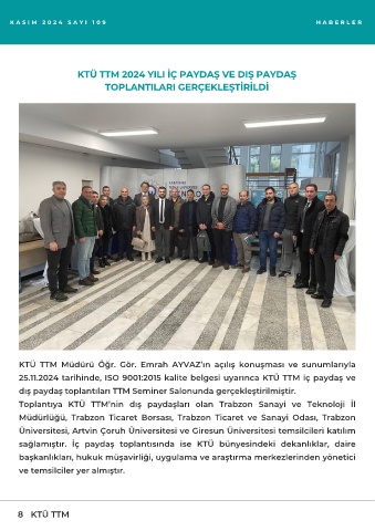 Toplantıya KTÜ TTM’n n dış paydaşları olan Trabzon Sanay ve Teknoloj İl