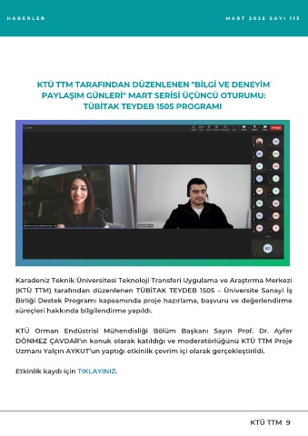 DÖNMEZ ÇAVDAR’ın konuk olarak katıldığı ve moderatörlüğünü KTÜ TTM Proje
