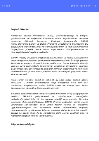 beklenmekted r. Bu çerçevede, f rmalar KTÜ’nün akadem k ve teknoloj k