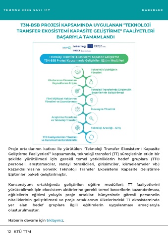 Konsorsiyum ortaklığında geliştirilen eğitim modülleri; TT faaliyetlerini